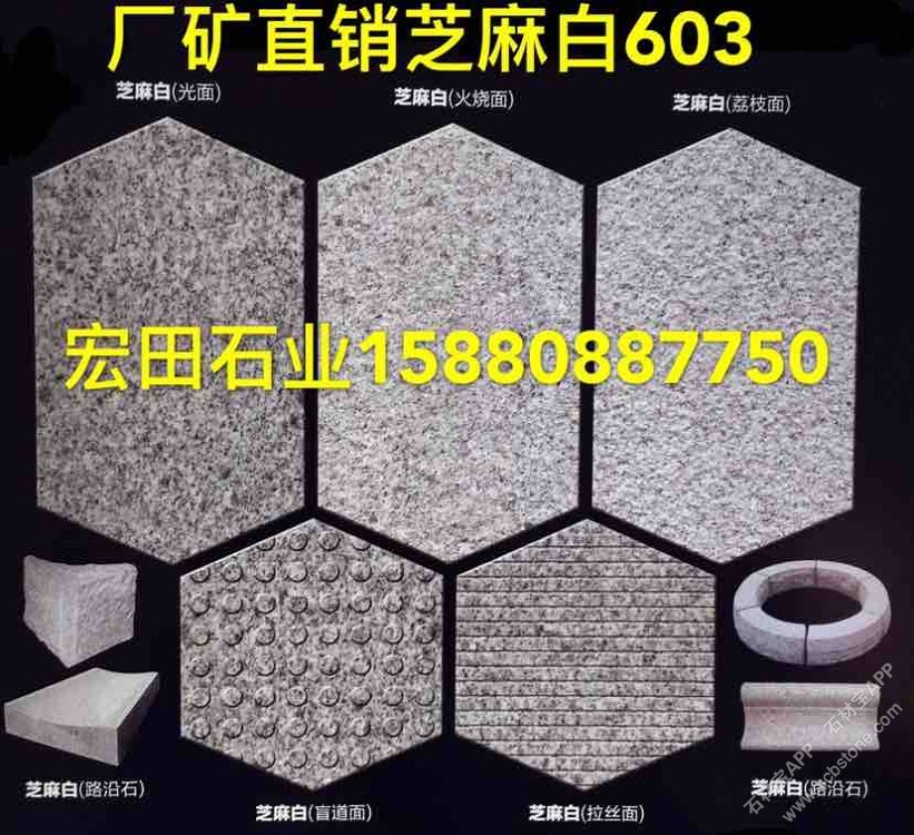 厂矿直销湖北【603芝麻白】:荔枝面、火烧面、光面、剁斧面、拉丝面等 加工:盲道石、水池、雕刻、等异形 15880887750,13599203899